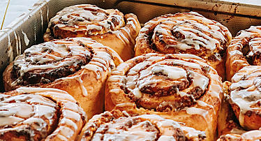 Den Teig von der langen Seite aus aufrollen und mit dem Messer zügig in gleichmäßige Scheiben schneiden (Trick: Zahnseide verwenden). Alle Schnecken mit etwas Abstand in eine gefettete ofenfeste Form geben. Mit einem feuchten Tuch zudecken und 25 Min. ruhen lassen. Mit etwas Pflanzenmilch bestreichen und bei 180 Grad für etwa 18-20 Minuten backen, bis die Schnecken goldgelb sind.