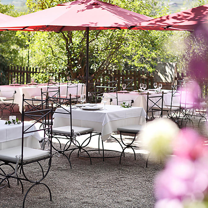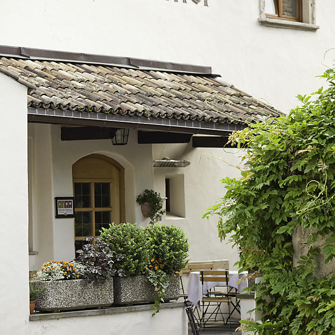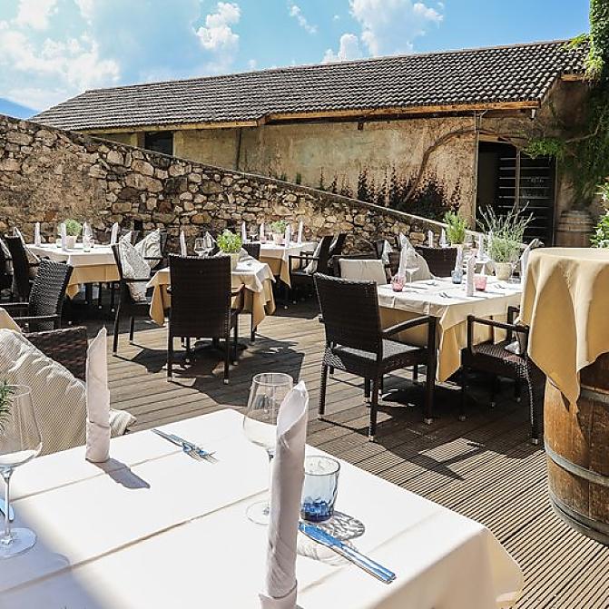 Cucina stagionale gourmet con prodotti equi e biologici. Situato all’interno della tenuta vinicola Kränzelhof, con un originale giardino-labirinto.