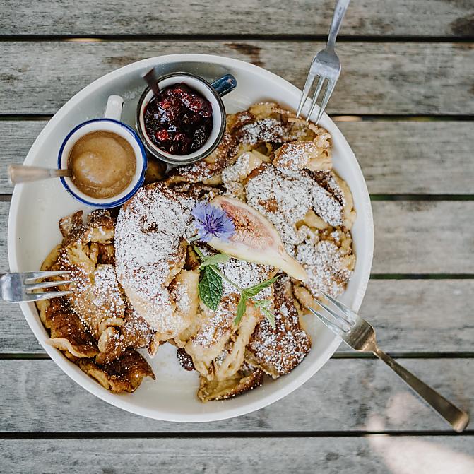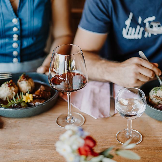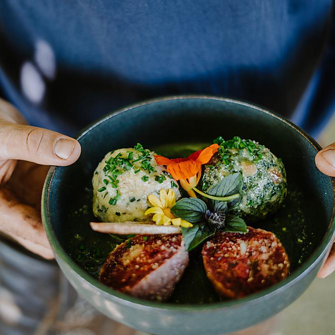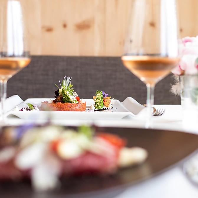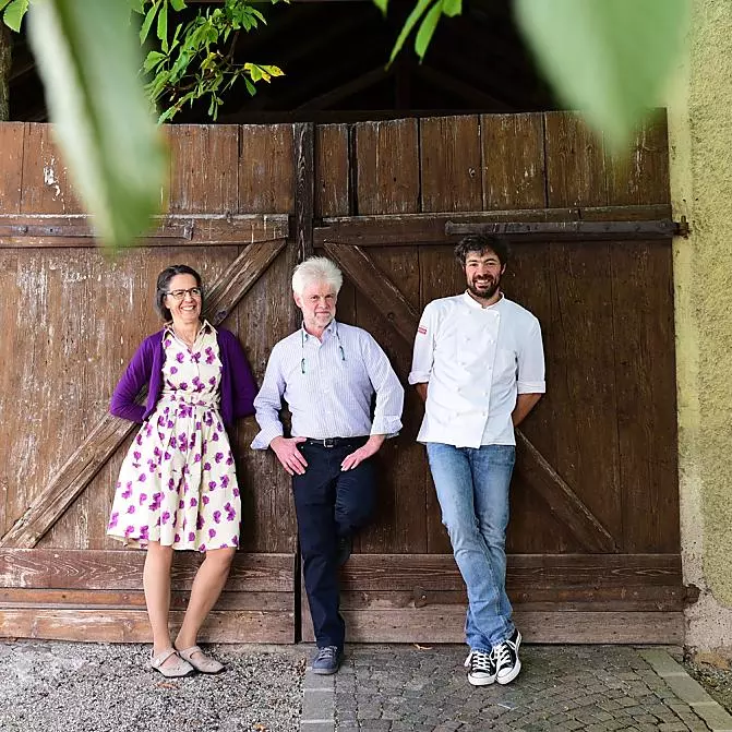 Insieme al loro team, Dominic e Aron, deliziano i loro ospiti a pranzo e alla sera con una cucina alpino-mediterranea e i migliori vini di tutta Europa. Nei mesi estivi, gli ospiti cenano in giardino all'ombra delle viti.