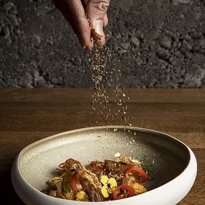 Un piccolo menù per una grande esperienza culinaria. Audaci creazioni e i migliori consigli per il vino, lungo le rive dell’impetuoso fiume Passirio.